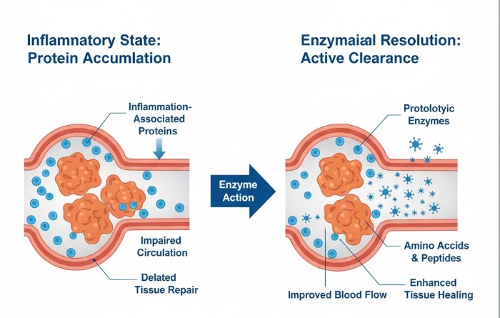 쉽게 말해? 염증 관련 단백질을 작은 단위로 분해해 몸의 자연스러운 대사를 돕는 역할을 하는 것입니다.