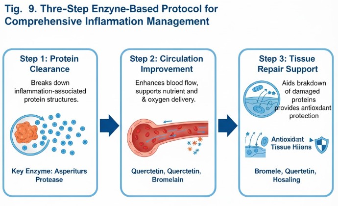브로멜라인은 손상된 단백질 분해를 돕고, 퀘르세틴은 항산화 작용으로 세포를 보호합니다.