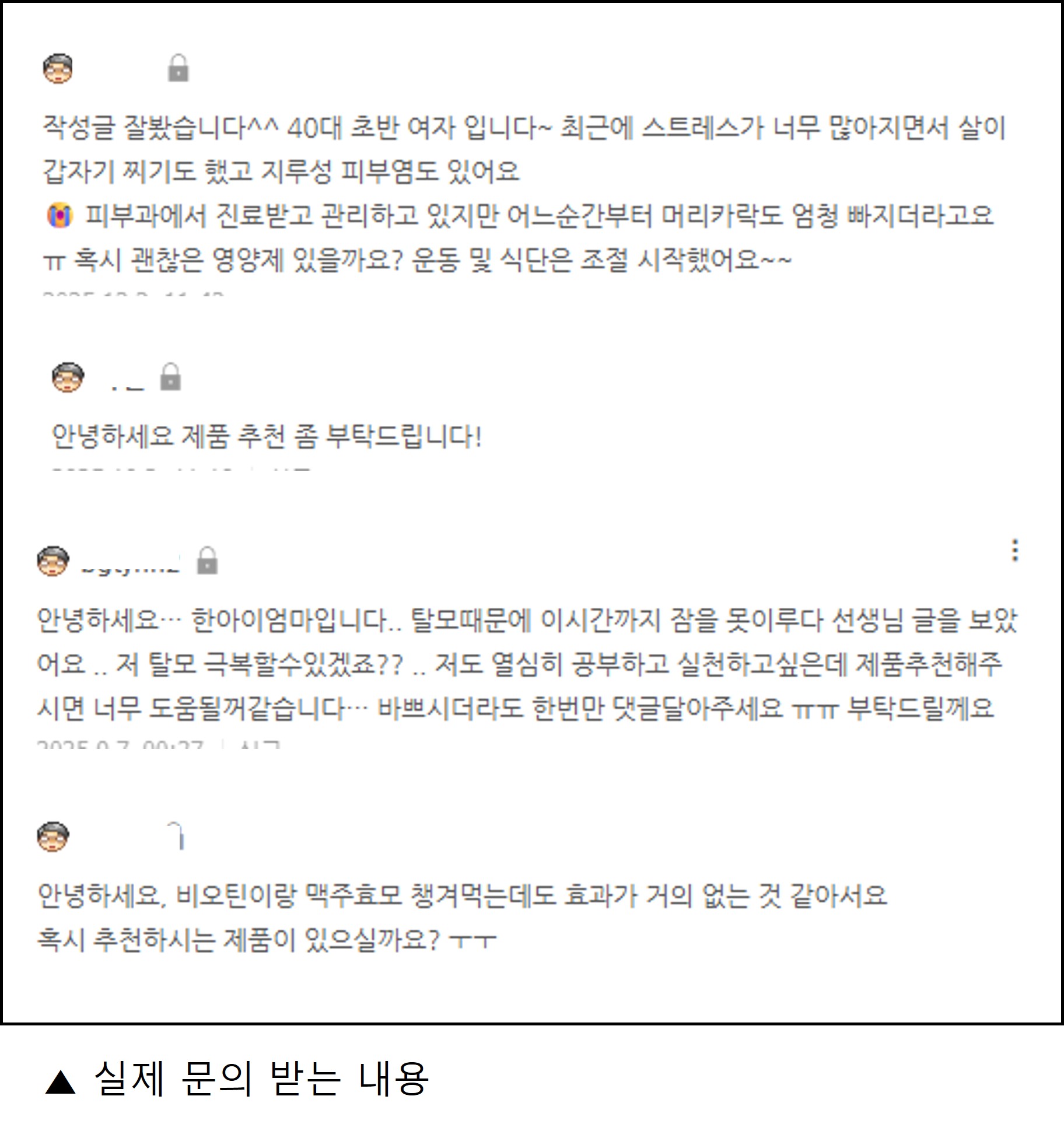 물론 영양소 조합만으로 모든 탈모 고민이 해결되는 것은 아닙니다.
