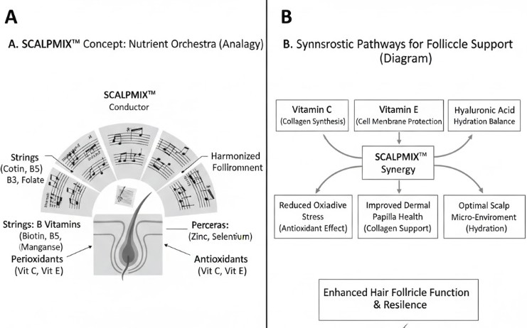 스칼믹스는 비타민 B군, 미네랄, 항산화 성분을 균형 있게 배합해 모낭 환경을 관리하는 데 도움을 줄 수 있습니다.