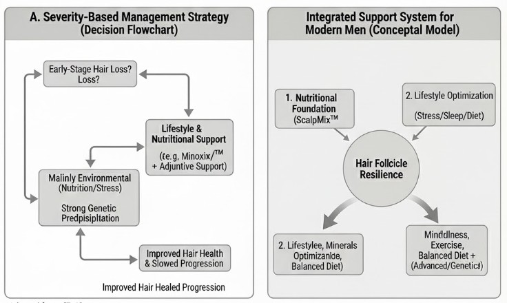 물론 영양 관리가 만능은 아닙니다. 개인의 탈모 원인, 진행 정도, 생활 습관에 따라 도움이 되는 정도는 다를 수 있어요.