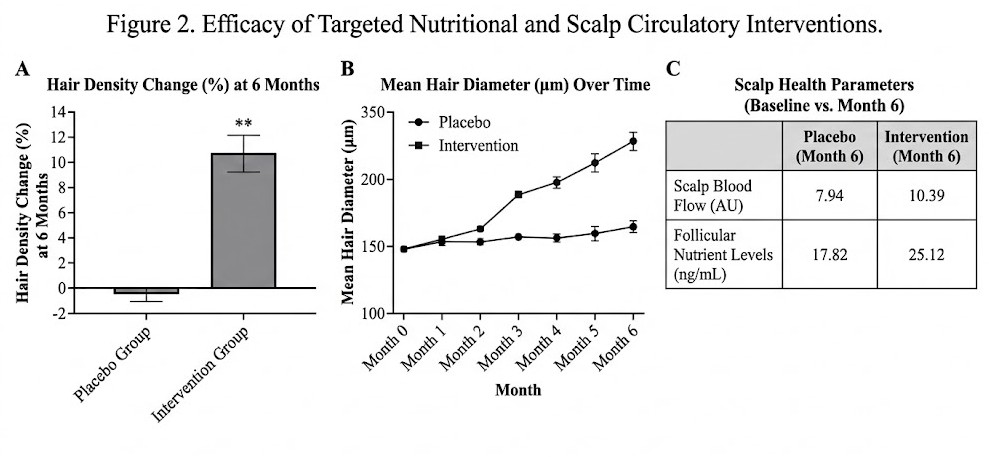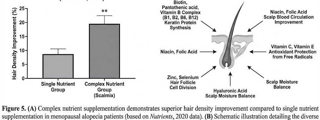 갱년기 탈모 여성에 12주간 복합 영양소 보충군과 단일 영양소 보충군을 비교했더니,