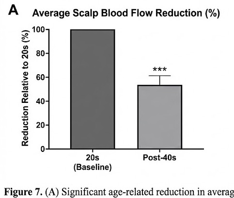 특히 정수리 부위 혈류 감소가 심했죠. 이는 모낭으로 가는 산소와 영양 공급이 그만큼 줄어든다는 뜻이에요.