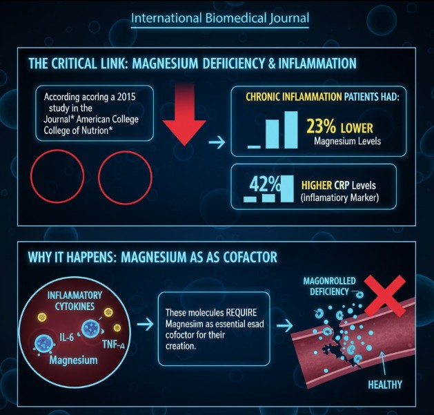 만성적으로 염증수치가 높은 사람들은 혈중 마그네슘 농도가 평균 23% 낮았고,