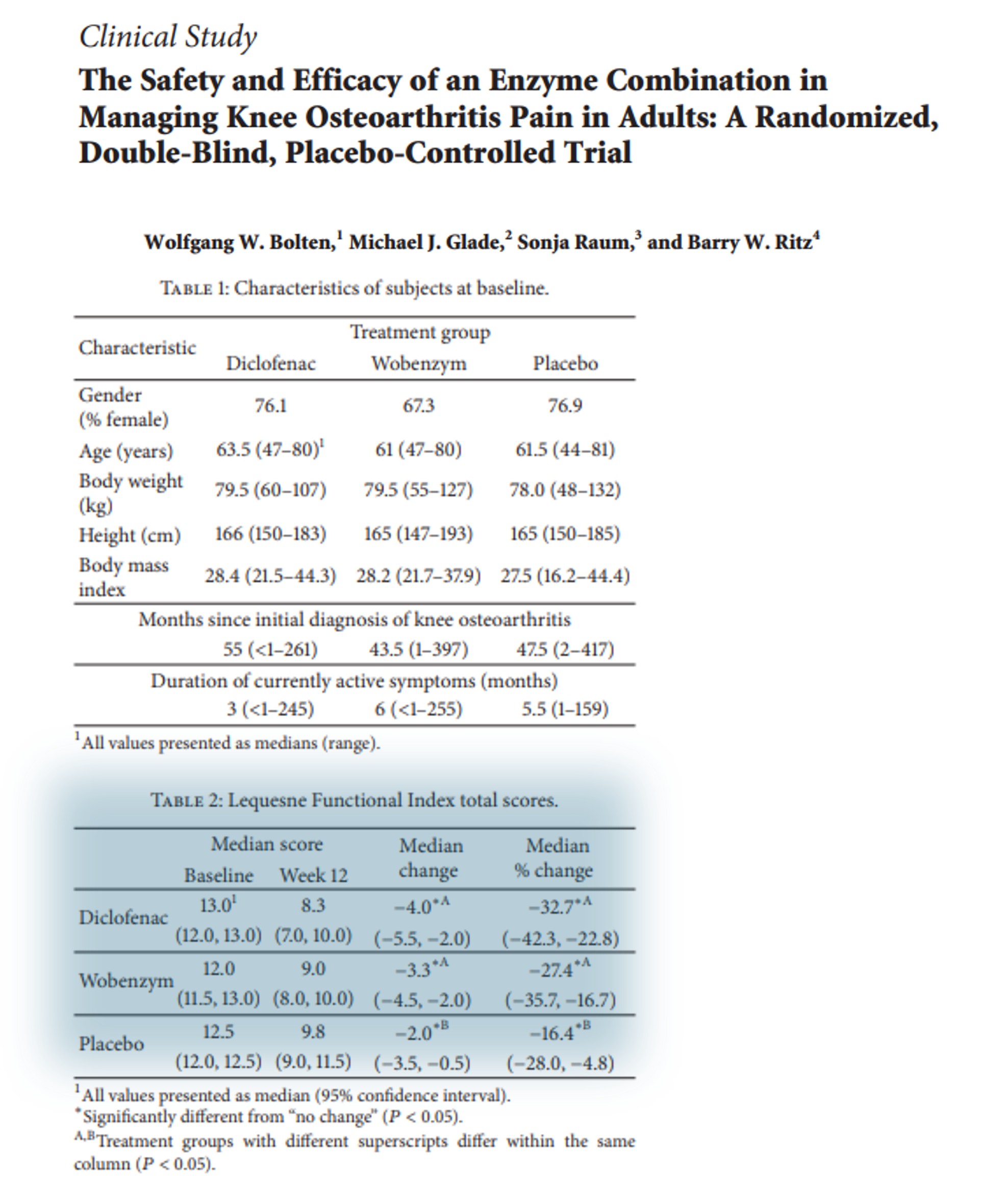 전신효소 섭취 그룹은 12주 후 통증 척도(VAS)가 평균 45% 개선되었고, 관절 기능 점수도 유의미하게 향상되었습니다.