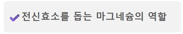 염증 반응이 일어나면 마그네슘이 연료처럼 소모되는데, 부족하면 몸이 회복할 힘이 줄어듭니다.